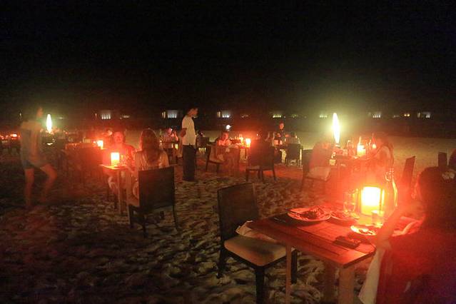 地龙虾身材短小精干,浑身散发着让人无法抗拒的闪亮深红色。一口咬下它雪白的肉体,满嘴是鲜甜的海洋味道。自助餐的食材都很简单,只是胜在新鲜,胜在你是脚踏在柔软的沙滩上,印度洋的从容海风正吹拂过你们轻声交谈的片言只语。