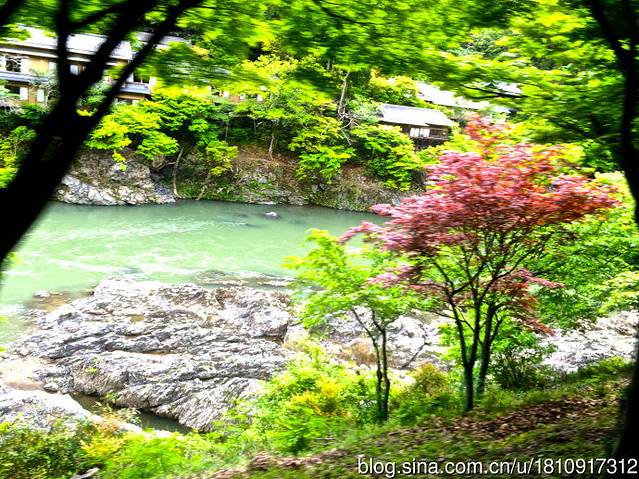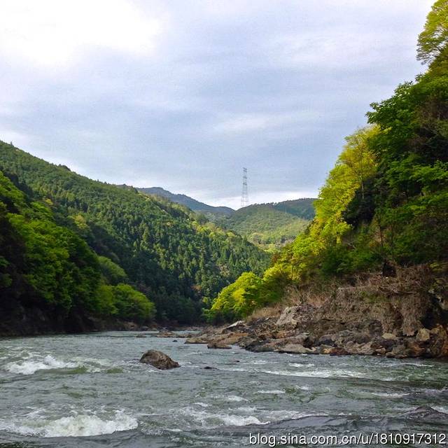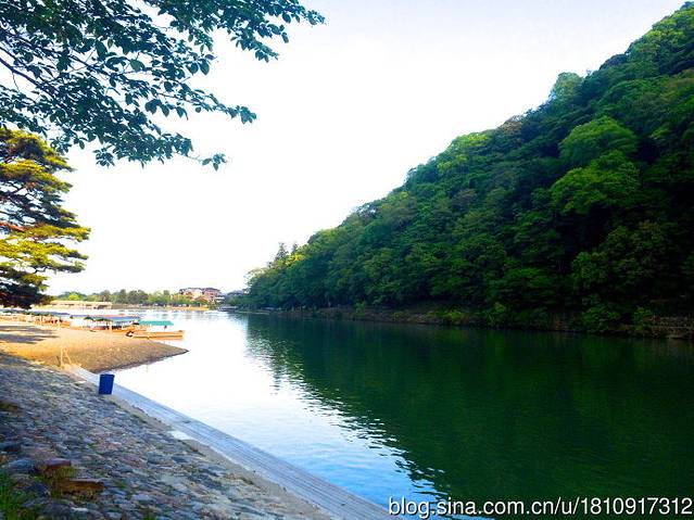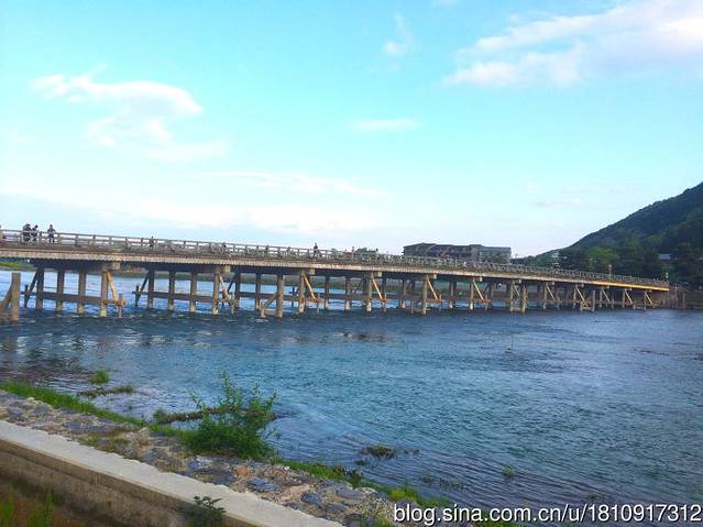 我们先去看了渡月桥(とげつきょう)。据说是龟上上皇看見月亮慢慢的在桥的上空移動,发出了「くまなき月の渡るに似る」的感叹,因而得名。