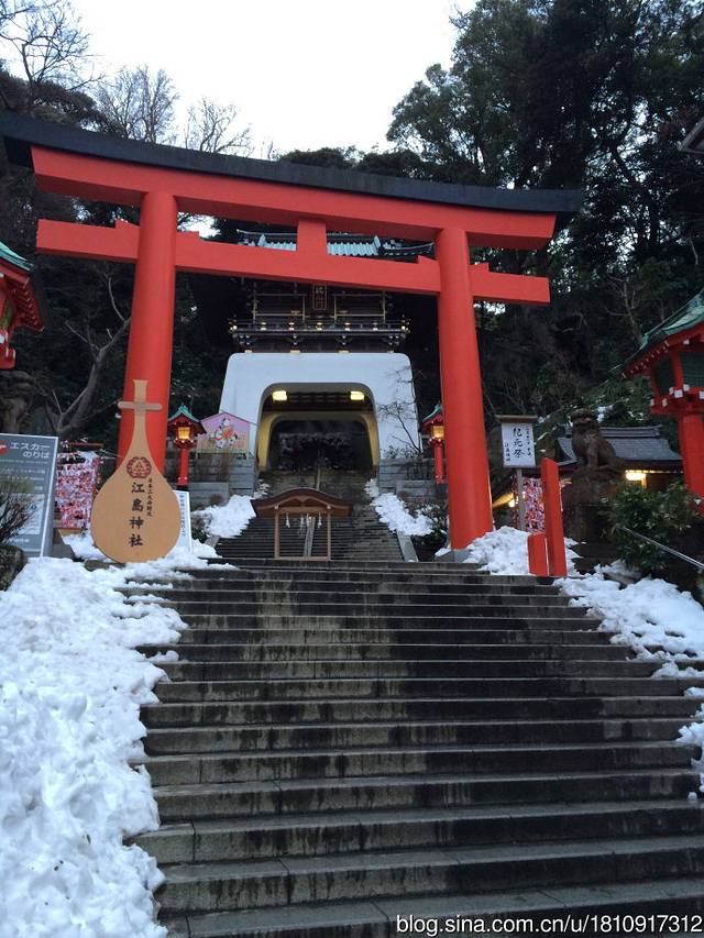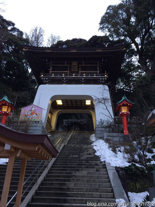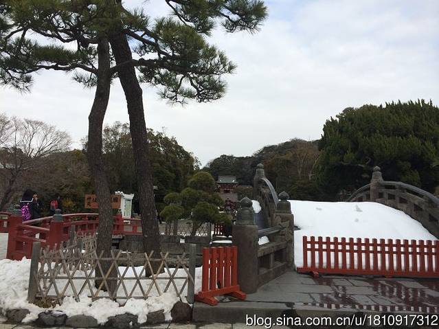 去镰仓是在东京第一场大雪后的第二天,交通恢复运营,但是20年一遇大雪之后到处都还是积雪的美景。