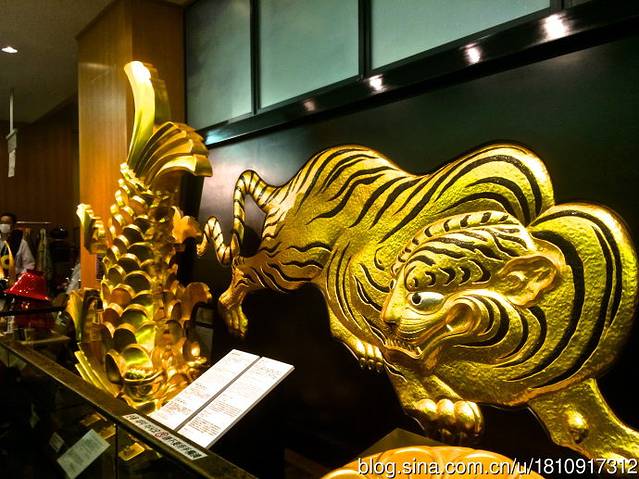 这是馆内展示的用于装饰天守閣最上层屋檐的伏虎和鯱(しゃち),是实物的等比例模型,非常有气势。