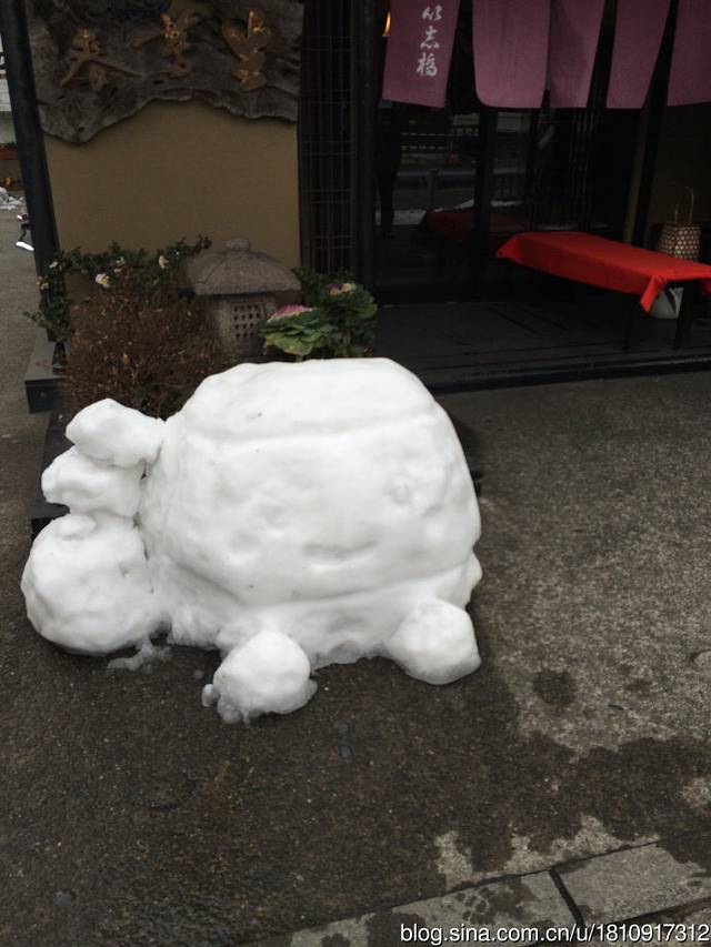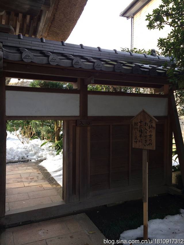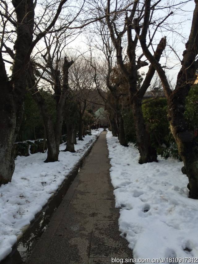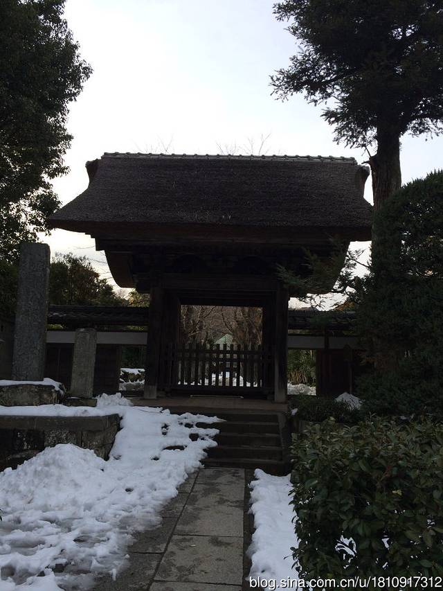 我去的时候一个人也没有,门小小的,里面很深幽,是古代日式庭院的的样子,积雪下非常漂亮,因为门口禁止拍照的标牌,所以美景只能留在心中了。
