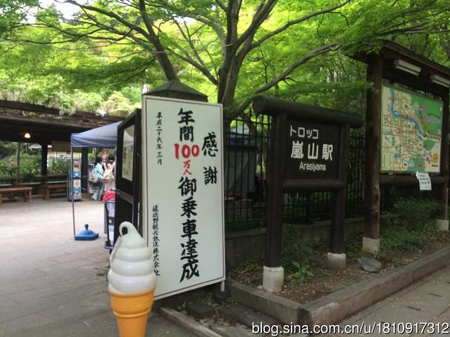 (从京都站坐山阴本线到嵯峨嵐山站,大概16分钟)