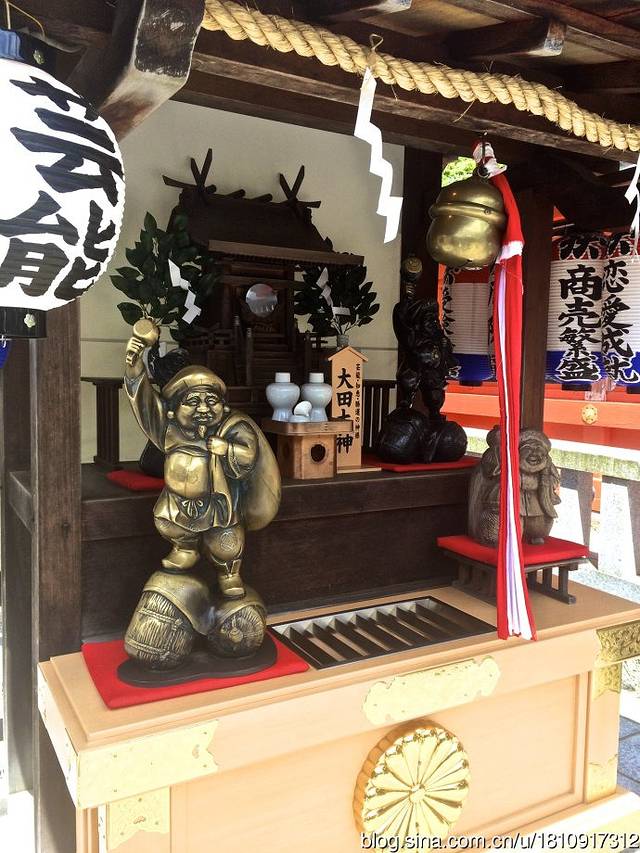 这个是神社的名物,撫で大国さん,抚摸它的不同部位帮助你实现不同愿望,他背的福袋是带来金运,脚代表交通安全,手上的小锤子代表良缘。。。。