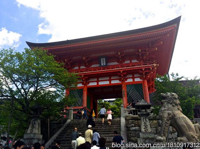 最后来到了清水寺,据说是京都人气最高的寺,果然是有很多游客,从寺前的小路开始就有很多穿着和服的女生们打扮精致地在那里散步。比较可惜的是正好有些部分在修葺,所以可能没有看到最完整的寺