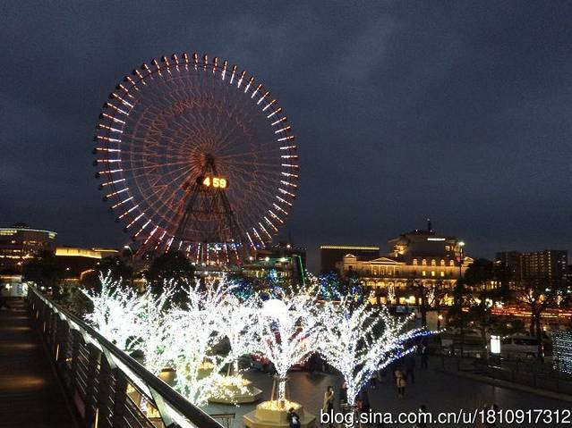红砖仓库前很热闹的是一个小型的室外溜冰场,好像是冬季的定番。从官网上看过红砖仓库的夜景也很漂亮,大家可以考虑,而我真的是在风中凌乱了,大家将就着看吧~~~(http://www.yokohama-akarenga.jp)