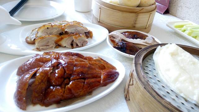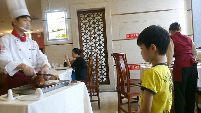点左烧鸭后,师傅会系你桌前开始片皮。你睇朗少睇得几聚精会神。