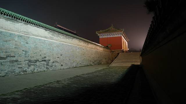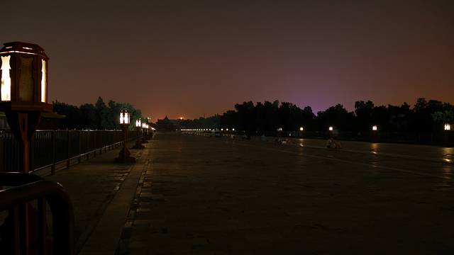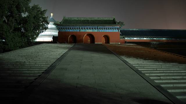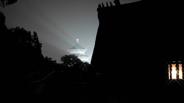 晚上九点半后,祈年殿内射灯和路灯逐渐关闭,只能望星找方向了。幸好东门的广场大妈的“伤不起”还能引导出这大迷宫