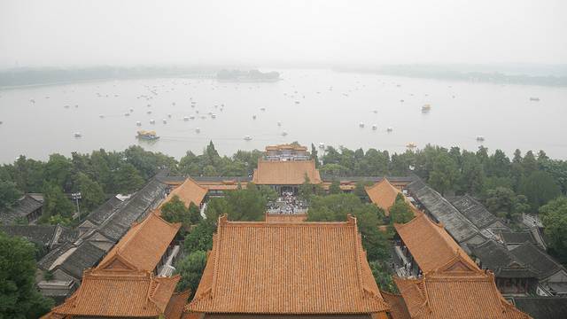 在佛香阁望出去。能把整个昆明湖尽收眼底~