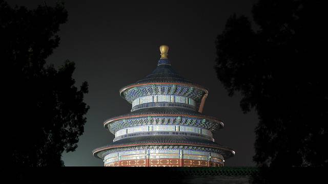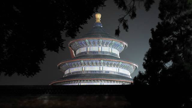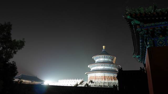 四处只有暗暗的路灯,唯有祈年殿内射灯明亮