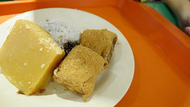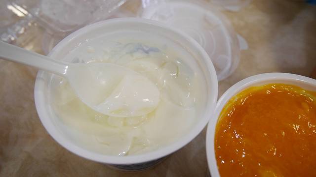 黄色大大够嘅叫豌豆黄,有D似广东的绿豆膏甘。旁边的叫驴打滚,系用黄米面包住D豆沙,面头再洒D黄豆粉。白色的叫烧饼,里面系豆沙。都系北京的出名小吃。但一定唔好试叫豆汁的~~1.5元一大碗,试了一口就实在饮唔落,又寂又腥又酸~~~~