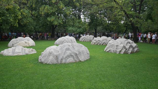 七星石,是明嘉靖年间的镇石,到宜家有470余年。话说系明代建都北京时明成祖(朱棣)想稳一个祭天嘅地方,有一晚,他发梦见到天门大开,北斗七星跌落黎呢度,于是就系呢度起个天坛祀天。其实呢D石头好普通。明嘉靖九年(1530 年),有个道士话呢度太空旷啦,5利于皇位和皇寿,于是就摆左七石镇在这里。清朝果阵,又在东北边加左够石头,表示不忘祖籍。所以话系七星石,其实是七大一小共八块巨石。