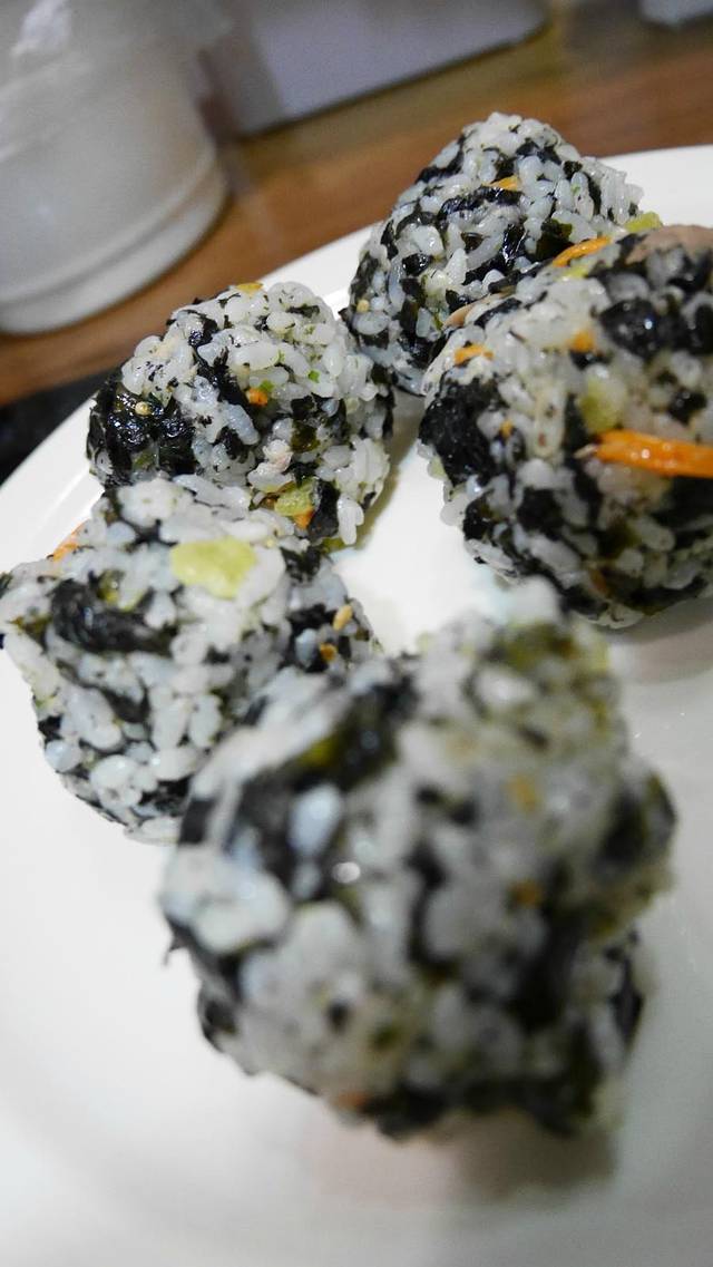 吞拿鱼紫菜饭团。要自己拌同自己搓。