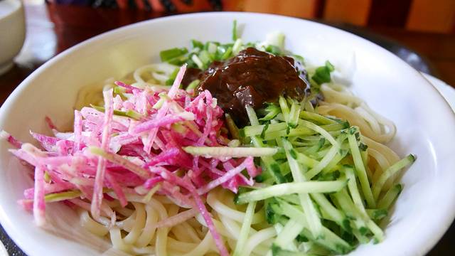 黎到北京,更系要试下当地著名的食物,北京炸酱面。呢间嘅酱料里面有肉粒。其实就系捞面。