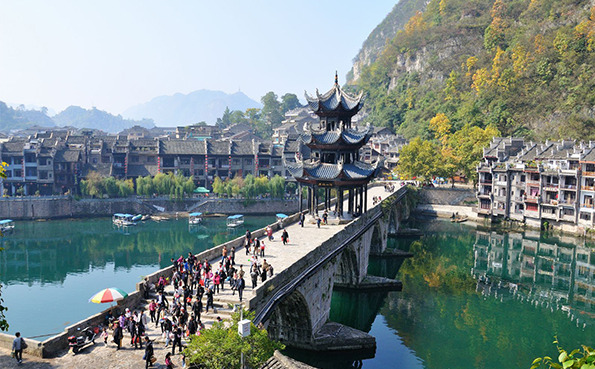 碧绿宽阔的舞阳河围绕着整个古镇。