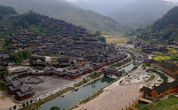 俯瞰下的苗寨,感觉虽不是很大,但很却很有苗家色彩。还等什么,进寨吧!