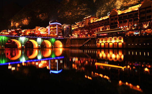 夜幕降临的古镇霓虹斑斓,多彩夺目,慢慢的游走在河边,吹吹河风,既凉快又惬意。
