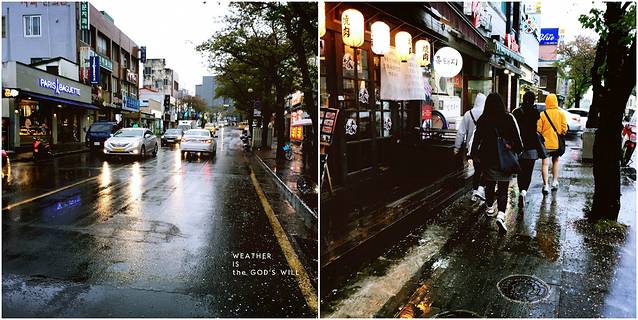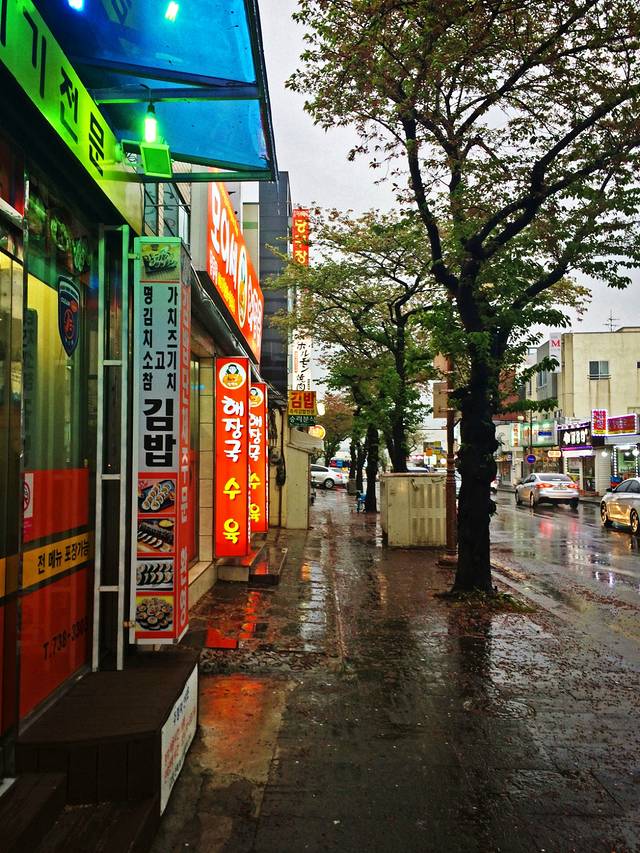 天色渐渐暗下来,雨就这样下了一天,行走在济州的街道,让人感到生活的宁静和舒适。