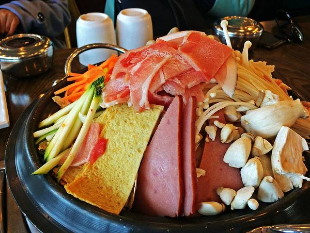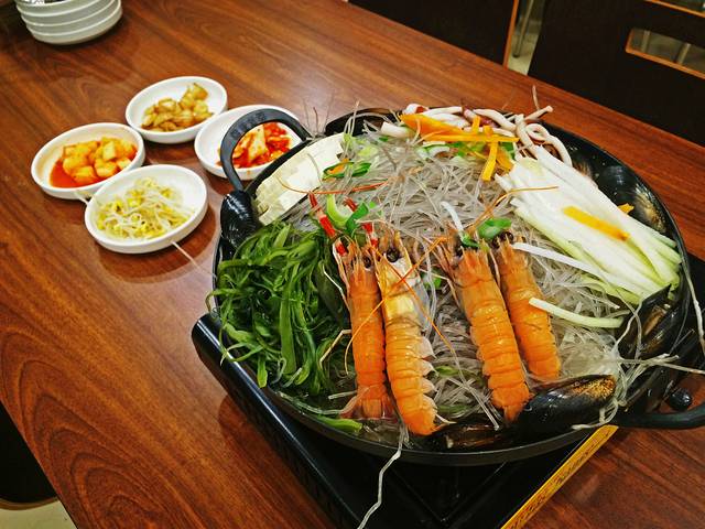 这是在济州的第一顿团餐,当时一进饭馆看到这一锅眼睛都亮了!结果领队告诉我们这是其他团的餐……呵呵……