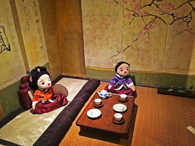 民俗村里有很多中文非常流利的讲解员,其中不少是中国人,比如给我们做讲解的就是在韩国上大学的中国学生。讲解员通过与实物结合的讲解让我们基本了解了过去济州岛的生活状态。