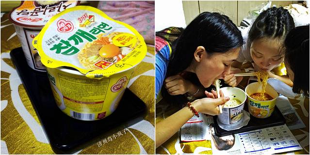 奔波了一天,晚上洗完澡敷完动物面膜,4个人挤在一张床上抢两碗泡面吃真是太幸福了~