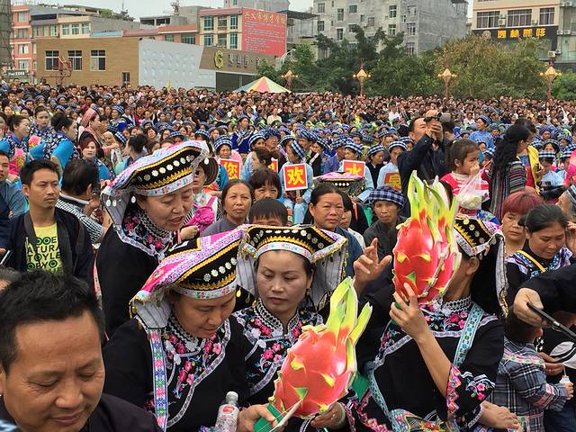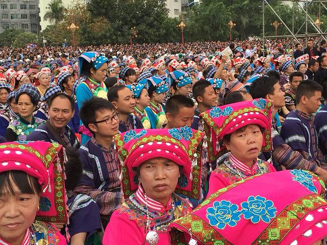 气氛爆棚,各族少数名族:壮族、苗族、布依族、彝族等齐聚一堂欢庆。