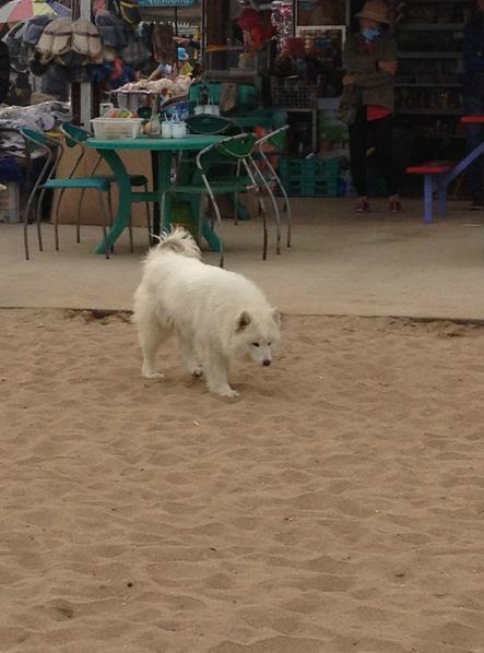 然后呢,我们又步行去了海边~从怪楼去海边大概用时15分钟。海边就没什么好讲的了~~这片沙滩不太大,左右都被圈了起来,估计成了私人的浴场了吧。