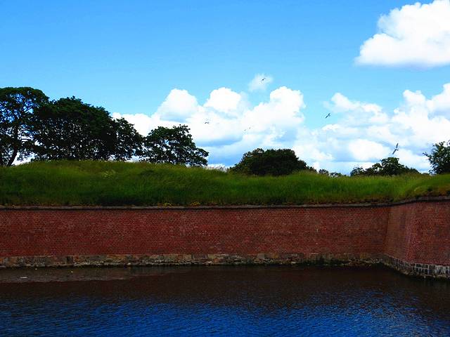 其实哈姆雷特不过是个虚构的人物,却给这个城堡增添了不少神秘色彩。卡隆堡宫意为“皇冠之城”,它是丹麦国王的第一座大型宫殿,历史上曾两度被毁,1637年修复时,改变了宫内的结构,使之兼有巴罗克建筑风格,宫外的屋顶也由原来的圆形螺旋塔改为现在的尖塔顶。菲特烈四世国王(1699-1730)在位时,扩建了克隆堡宫周围的防御工事,如壕沟、炮台工事等。1785年至1922年期间,卡隆堡宫还曾被用作兵营,在城堡周围,面对大海,还有很多门的火炮。当年一定是用来抵御外敌的。岁月沧桑,如今的古堡显得格外安详,几百年前的火炮如今已不再是战争武器,每当丹麦女王玛格丽特二世的御船经过厄勒海峡时,它们被用来鸣放礼炮。