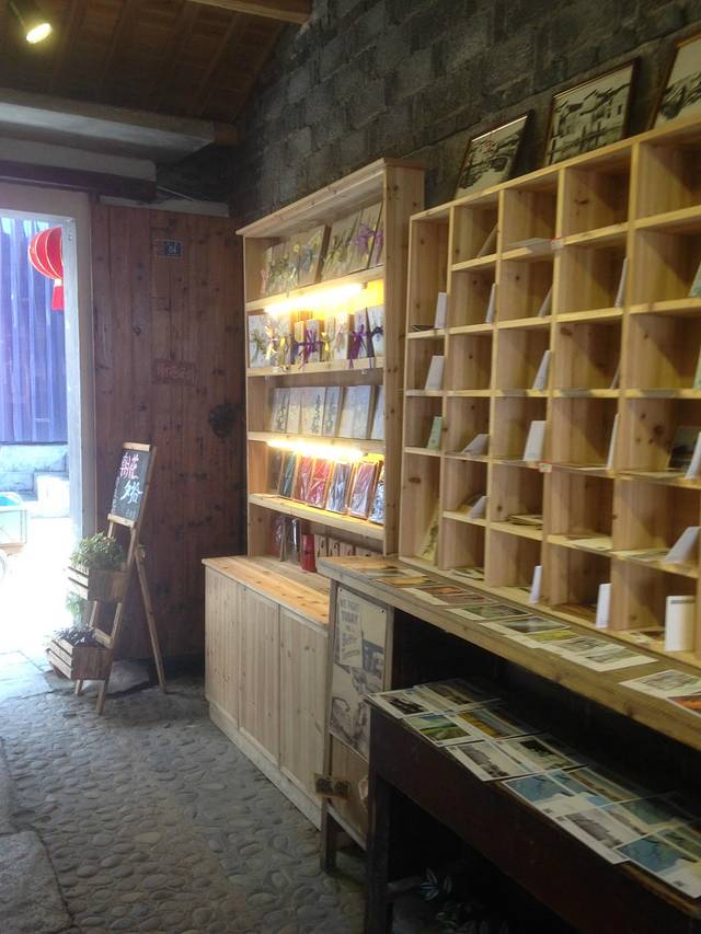 宏村原创的明信片纪念品小店。喜欢店铺窗口的那段话,我在宏村想念你。