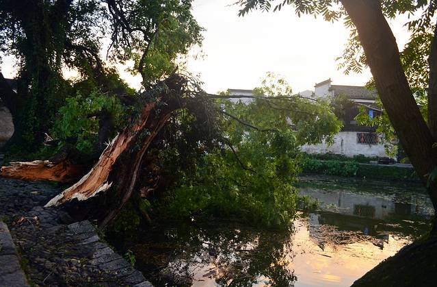 昨晚暴风雨,南湖边上的大树被掀倒。很是惋惜。