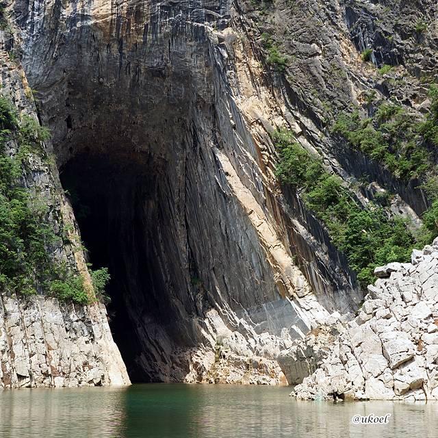 最近看了《盗墓笔记》第一集后,回想起来,下面那个燕子洞倒是颇有几分阴森的味道,可惜大船无法进洞,只能在明媚的晨光里与它打个照面了。