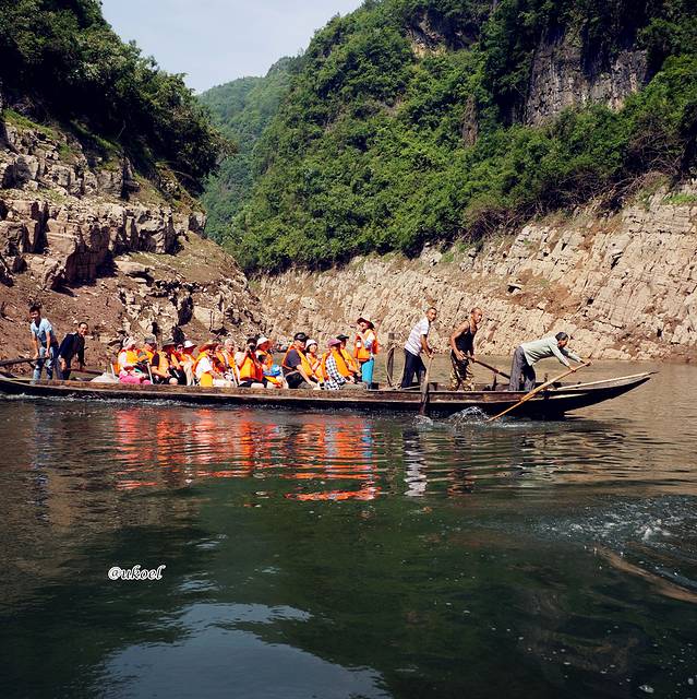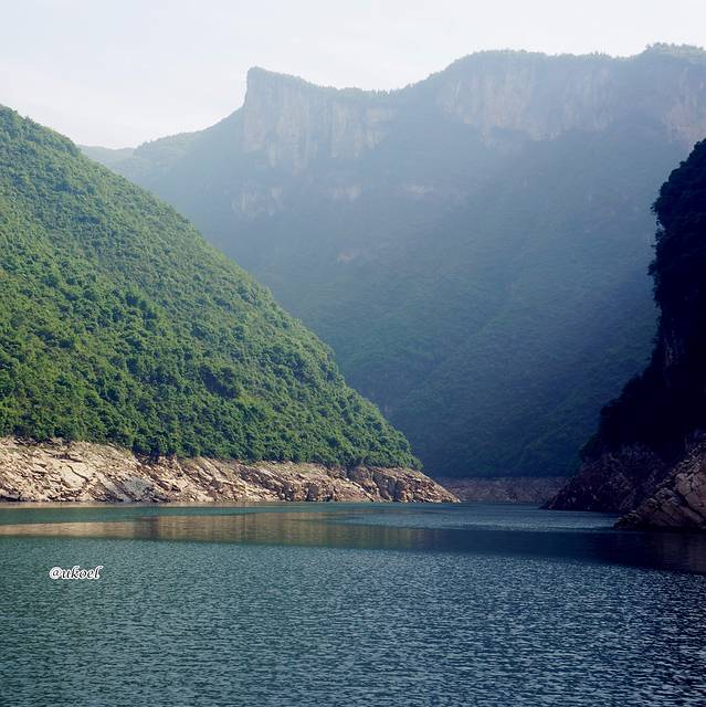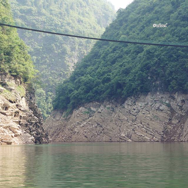 30度上下的气温,衣着轻便又不至于酷热难当;汛期前库区水位因准备蓄洪而下降,两岸群峰可以显得更巍峨一些;一路的江水都是碧绿色的,不似雨季的浑浊而愈发秀美。唯独缺少秋天的满山红叶,或许可留待下一次旧地重游。