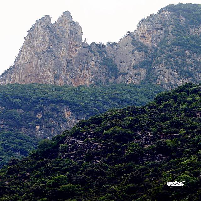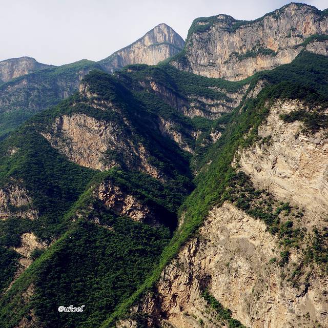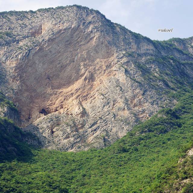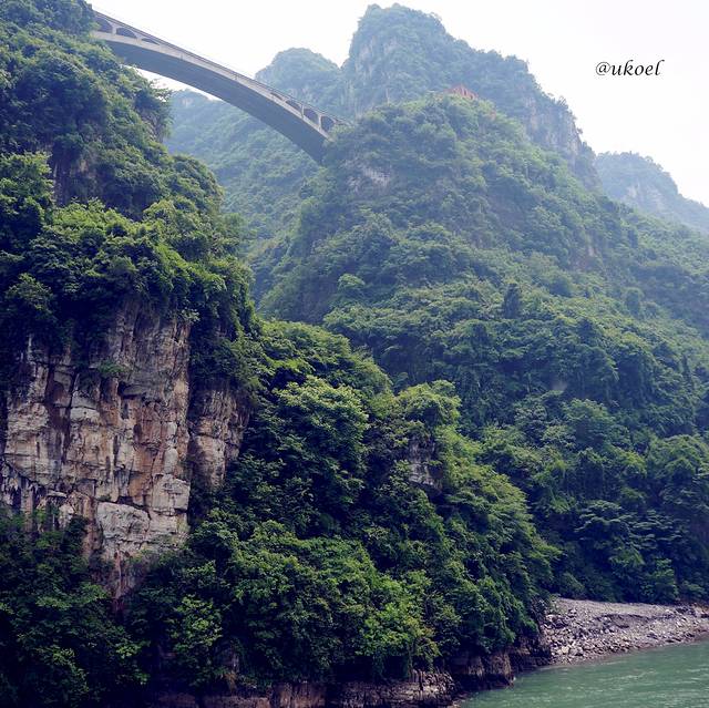 起始段的巫峡依然延续了青葱秀美的风格,但渐渐的,岩层裸露的部分多了起来,显露出巍峨和险峻的姿态。
