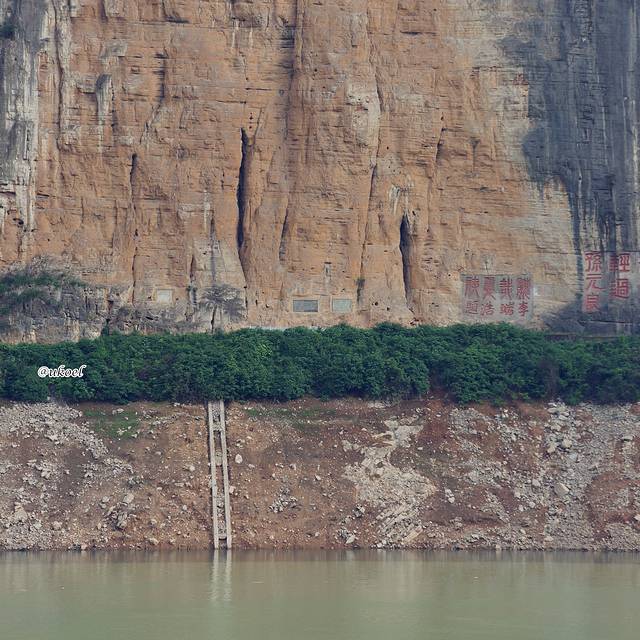 从夔门处驶过,对面则是如今已保存不多的岩刻。