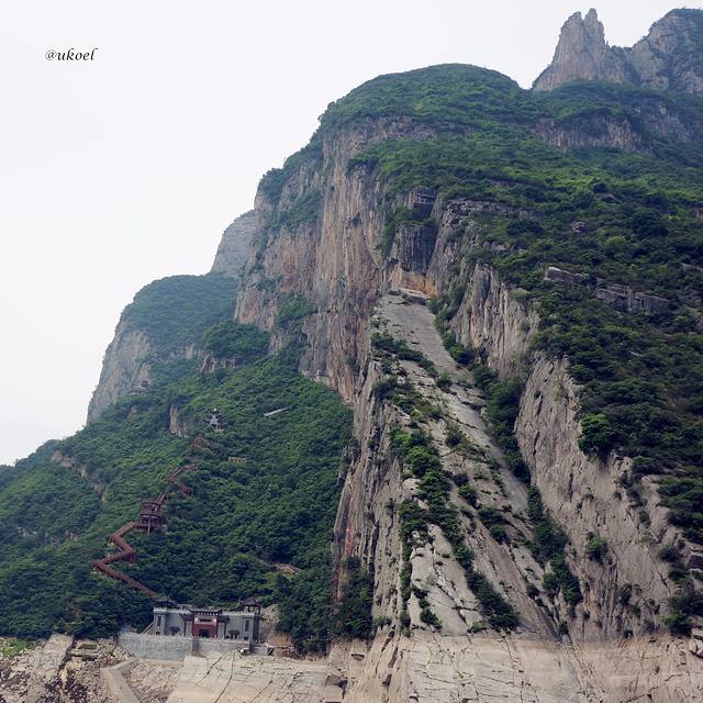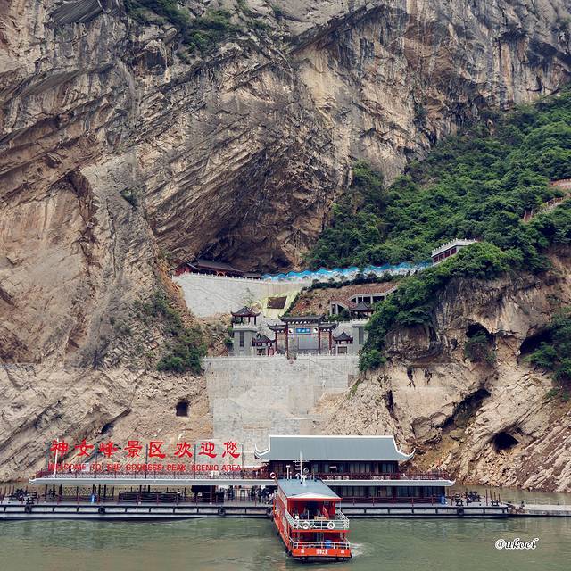 如今的神女峰已不再是高不可攀了,山头背后很近的距离就修建了两个游轮码头,可以从前方的巫山县坐船到这里,沿着山路直上峰顶近距离观赏。半山还修建了酒店,住宿都不成问题。
