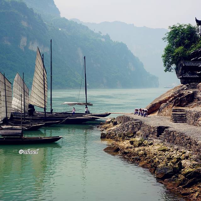 这一夜枕着流水入眠,平稳而安详,清晨的阳光点亮窗棂的时候,船已静静地停泊在巴东港的码头上。