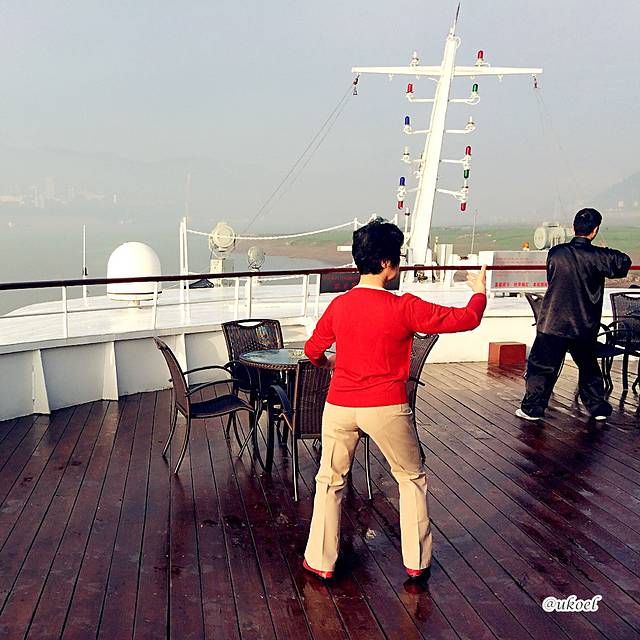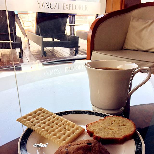 每天早上6:30,6楼的酒吧开始提供免费的红茶、咖啡和两三样茶点;7点则有教练带领在甲板或室内练习太极。早餐7:30开始,然后8:30就要准备上岸游览,因而在船上想睡个懒觉是不太现实的。谁都知道早睡早起是健康的生活状态,但总是轻易地抛之脑后,只有趁着旅行的季节,才能逼迫自己回归正常的作息规律。