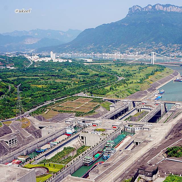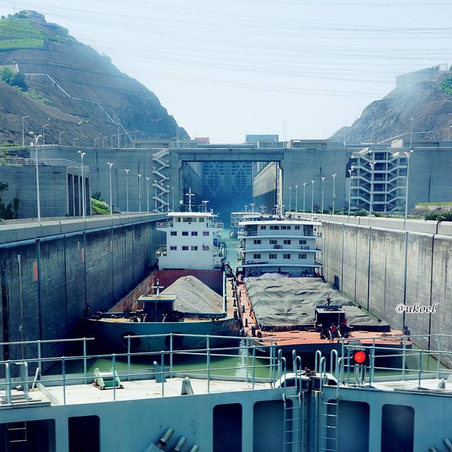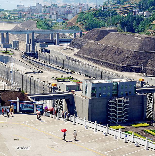 坛子岭的另一侧就是五级船闸,虽然角度仍然不佳,总比大坝看得更真切一些。今天傍晚开始,我们的船就要缓慢经由这里去往上游。