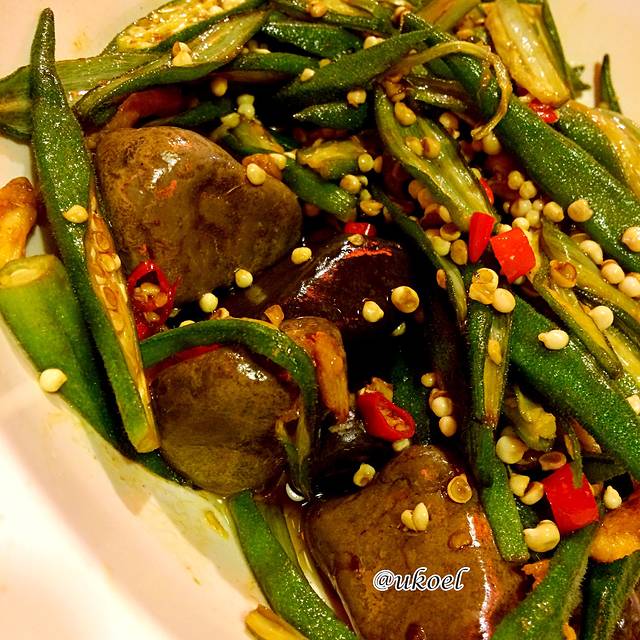 今天是周末,而餐厅所在地往前走一小段就是另一个三峡游轮码头:新世纪码头,所以晚上用餐的人不少。招牌的菜色就是长江肥鱼了,应该就是鮰鱼吧,168一斤,一般两斤起,炖一大锅白汤,足够六到八人享用。价位是高了一点,但鱼肉非常细嫩鲜美,没有土腥味,而且据说这个价格很多年都没变,总之还算厚道。其余的菜肴就是农家菜的风格了,价钱适中,也都货真价实,点了桃胶炒土鸡蛋、三峡石炒秋葵、野芹菜做的野菜饼、一扎绿豆沙,加上肥鱼汤一共560块,大家都觉得挺好吃。