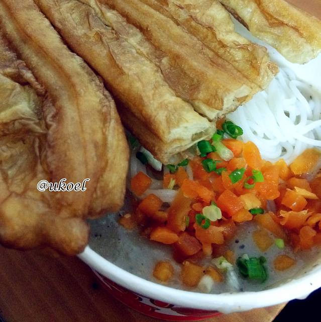 还是从黄鹤楼的西门出,从台阶下到司门口环形天桥,西侧出口下去是户部巷外的步行街,经过周黑鸭先买一盒20几块的鸭脖子当宵夜;看到一家规模较大的蔡林记,点了最便宜的5块钱的全料热干面,以及3块钱的米糊和2块钱的豆浆;往前不远便是户部巷入口,折进熙熙攘攘的狭窄小街,人声鼎沸,热浪扑面,可大多摊点卖的都是些不伦不类的小吃,四季美的汤包也可以忽略了,决计没有江浙的好吃吧。其实我最想吃的是面窝,可惜只有早上才卖,还好有徐嫂糊汤粉,这个绝对有特色,米粉浸润在鲜鱼和胡椒调出的浓稠汤底里,颇有个性的味道,再配一串鸡蛋油条蘸着吃,口感丰富,总共8块钱。这些东西人家是过早用的,我们只能拿来“过晚”了。