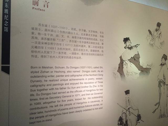 1、苏东坡纪念馆:一直很喜欢苏东坡,因为他的洒脱、因为他的闲适,有机会来杭州,苏东坡纪念馆一定要去看看的。苏东坡纪念馆,坐落在不太显眼的路边,小楼分两层,地方不大。天热的时候屋内开着空调,二楼有凳子可以休息,处处能体现出一些细致。一楼主要是苏东坡的生平介绍,还有动画展示,十分逼真;二楼主要展出他的字画,复刻的作品,真迹都在博物馆里收藏着,当时看到“欲把西湖比西子,淡妆浓抹总相宜”,穷想的前面两句是什么......结果啥都想不出。