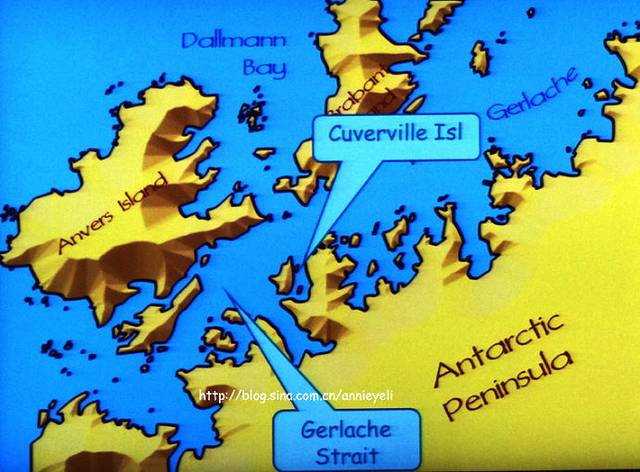 清晨,睡眼惺忪的我被朋友推嚷着来到甲板上,原来我们(游客满座98人)的小邮轮已经进入杰拉许海峡(Gerlache Strait),它轻轻松松地把南极半岛和周边几个小岛划分开来。