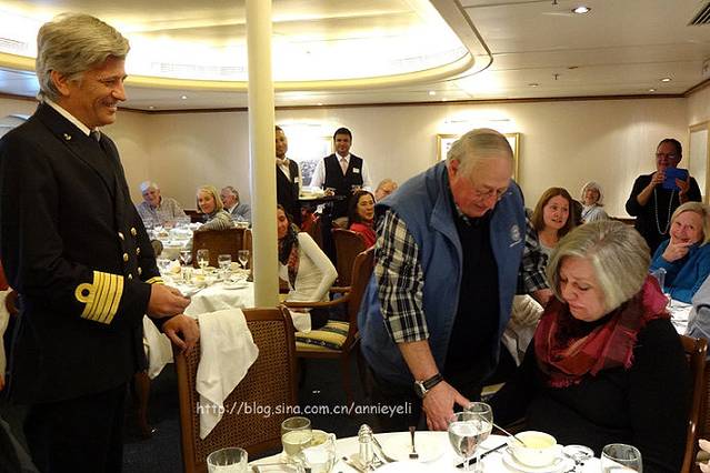 话说人在美国公司的南极邮轮上,晚餐还是照规照矩。