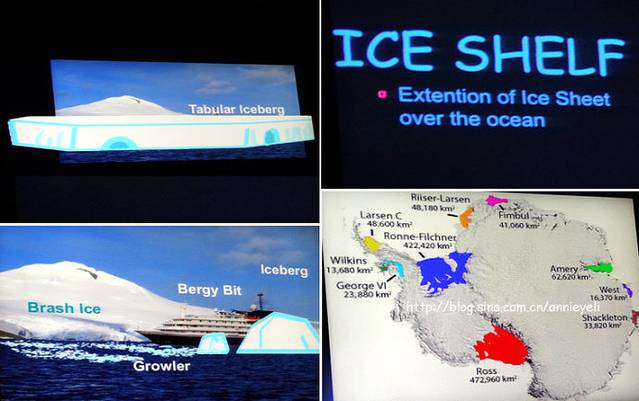 大家一边饶有兴趣地读图,一边默记新词:Ice Cap, Ice Shelf, Brash Ice, Growler, Bergy Bit, Iceberg, Tabular Iceberg… 原来南极冰的种类还有:Frazil, Pancake Ice, Ice Floe, Pack Ice…