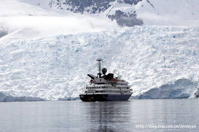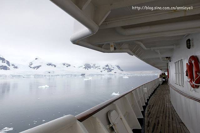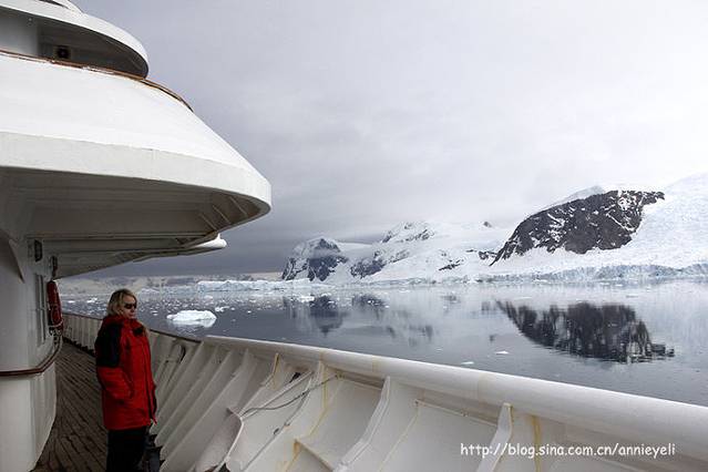 因为破冰航行在南极的勒梅尔海峡(Lemaire Channel,也译:利马水道),冰山、冰川逐渐把航道封锁了。