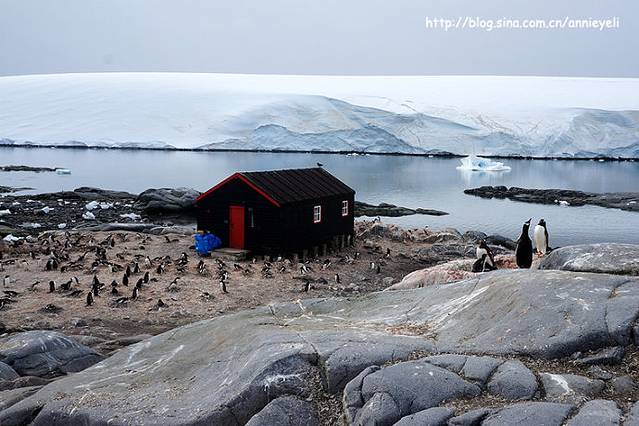 岛上处处是巴布亚企鹅(Gentoo penguin)巢穴聚集地,还有发射台和三个红黑两色相间的铁屋。