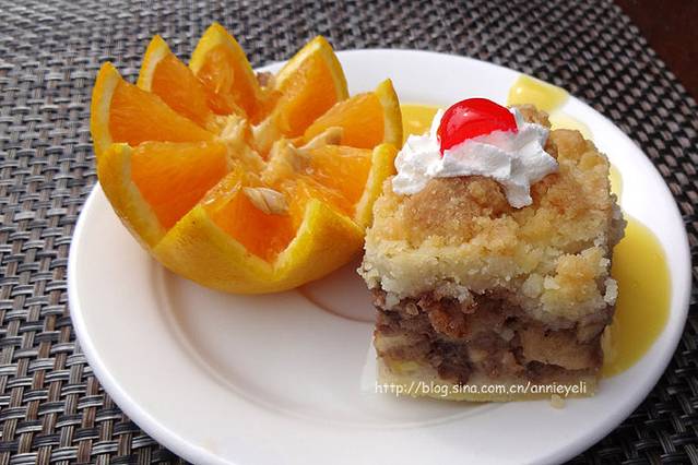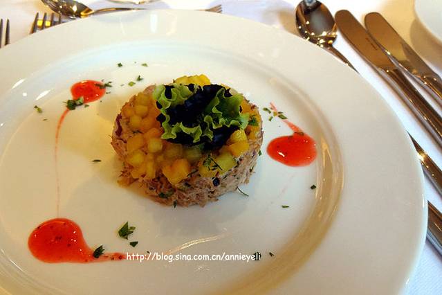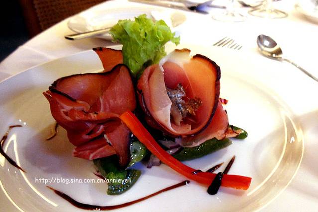 每人面前摆放着好多副刀、叉、匙,蛮有腔调的。
