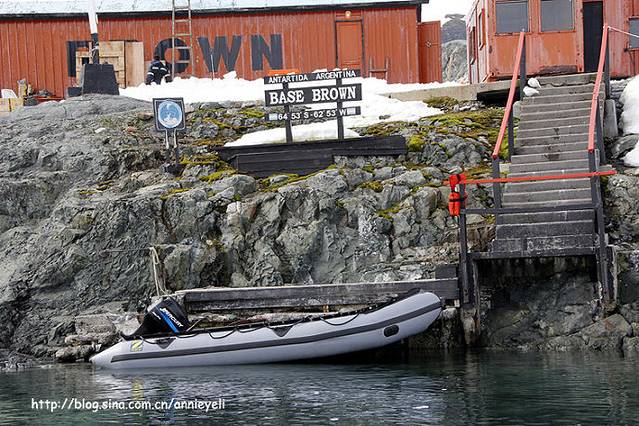 我们全船88位游客分组搭乘橡皮艇,靠向阿根廷的阿尔米兰泰布朗科考站。