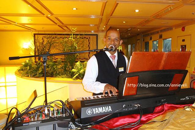 Antarctica’s White Wilderness 之旅的每个夜晚,我们在驻船歌手的弹唱音乐声中度过,可谓美妙逍遥。
