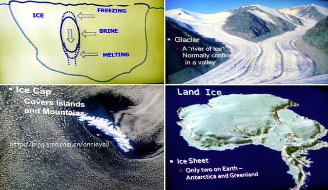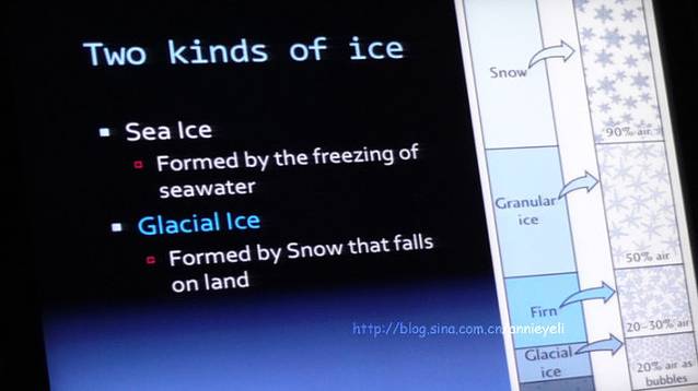 接着克里斯讲演下了雪后形成的两种冰:海冰(Sea Ice)、冰川冰(Glacial Ice)。
