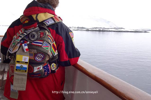 我们全船88个乘客中,有一位自称叫马可·波罗,他的背包缝满从世界各地搜集来的地名LOGO编织物,惹人注目,其实他是名叫罗斯的画家。